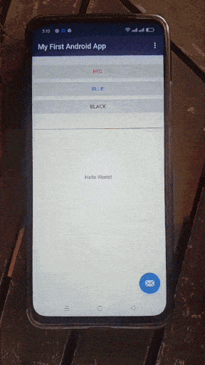 Click the buttons "Red", "Blue" or "Black", and WOW! Your first Android application performs the tasks!